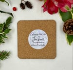 Hardboard coasters are cork-backed, standard-sized coaster (10x 10cm) with wipe-clean gloss finish.